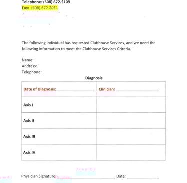 Ask your medical / psychiatric / therapeutic provider to fill out the Axis 1 form. Submit by mail, drop off, email (amy.fermi@elwyn.org) or fax(508) 672-205.